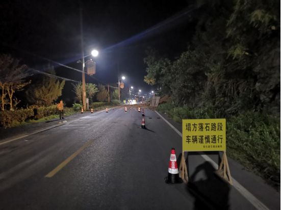 凌晨2点起,块石雨逐渐加大,现场值守人员决定将该处道路交通临时封闭,前后设置安全警示标识、锥筒,禁止车辆行人通行;4点,块石雨基本停止,抢险人员立即对落石进行紧急清理。4点30分,在确保施工人员安全的情况下,现场大部分落石清理完成,恢复半幅通行,滞留车辆安全有序通过。14日上午10时,该路段坍方落石全部清理完毕,现场恢复安全畅通。