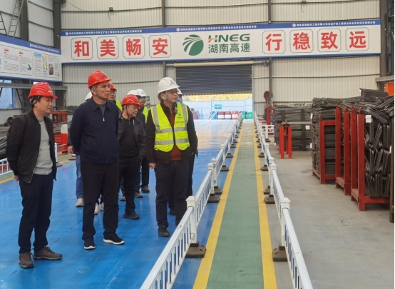 17日,虢柱一行首先来到耒宜扩容项目小构集中预制厂,在项目相关负责人介绍下,详细了解该厂采用的小型预制件生产线设备,随后前往智慧钢筋智造中心实地考察,并在项目公司驻地查看七方三保平台。