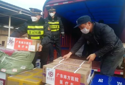 (岳阳紧急护送59箱广东援鄂医疗物资)