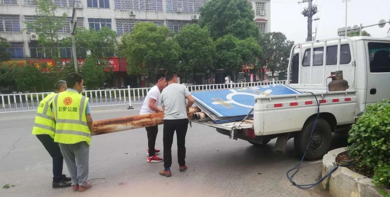 在接到热线电话后,工务股迅速安排养护工人前往事发路段进行察看并处理。在摆放好警示标志后,工作人员将倒塌的标牌及残余部件全部卸下,并迅速拖离事发路段,确保人民群众和车辆的通行安全。