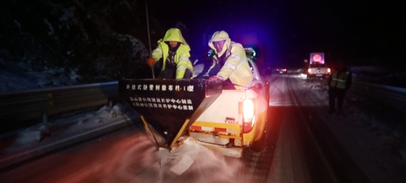 公路部门工作人员铲冰除雪