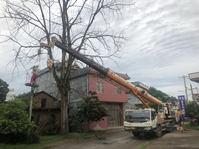 7月6日,宁远县公路部门组织专业伐木机械和人员,成功砍伐了柏家坪镇潘花村一棵极为高大的枯死、危险树木,从根本上消除安全隐患。