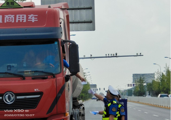 在支队统一部署下,支队超限治理执法大队党支部书记刘文迅速召开了治超专题会议,并紧密结合支队正在开展的“四亮”主题活动,要求大队班子成员和党员骨干发挥先锋模范作用,在治超执法中当好“排头兵”。7月30日,支队超限治理执法大队联合市交警支队,在辖区湘北大道、赶山路等城区重点路段,联合开展了超限货运车辆整治行动,执法人员顶炎炎烈日,冒高温酷暑,采取“设卡+巡查”的检查模式,结合前期对该类超限超载车辆运行轨迹和时间规律的摸排研判,在保障周边行车秩序的同时,以“零容忍”的态度,对货车超限超载等交通违法行为严查、严管、严控。