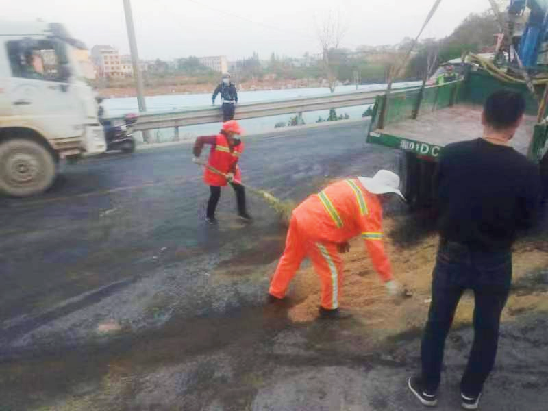 当时正值下班高峰期,车流人流量较大,路面污染严重,如不及时处置,将严重危害到司乘人员和人民群众的生命财产安全。