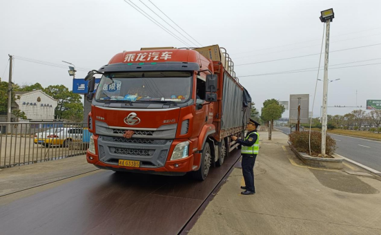 近日,一辆四轴重型特殊结构的货车经湘潭市道路交通易家湾执法站静态称重检测显示34660千克,超限3660千克,超限率11.8%,系统报警显示该车辆超限。该站执法人员迅速将该车辆引导进站过磅,数据同步在省治超系统自动生成。