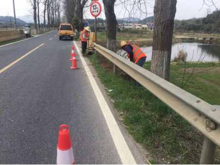 对于线路上存在的问题,结合相关部门要求排出具体处置时间表,克服天气等不利因素,进行科学合理安排。晴天组织施工单位加大人机料投入,对路面病害进行预防性处置养护,确保路面无明显病害;阴雨天气将人员分成多个作业小组,针对安防护栏标志设施修复清洗。