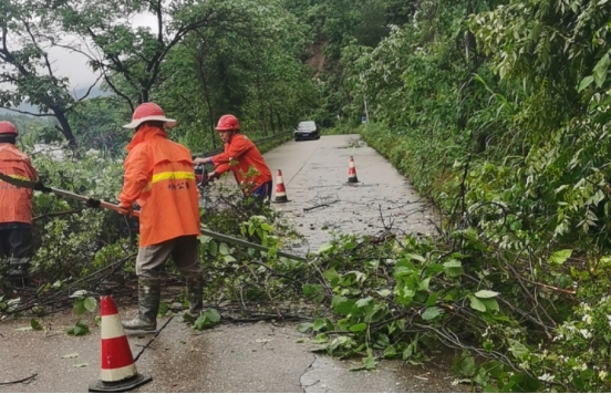 东安县公路建设养护中心第一时间启动防汛应急预案,按照“先通后畅、保证安全”的原则,采取“人工+机械”的方式对沿线影响车辆通行的落石、积水、塌方、倒树及时进行清理,对堵塞边沟进行清疏。因反应迅速,处理及时,沿线公路未发生任何安全事故。