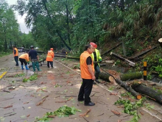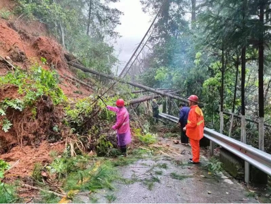 双牌县公路建设养护中心立即启动应急抢险预案,组织养护人员携带清障工具奔赴受阻地点,清理倒伏路树。两个小时之后,倒伏在公路上的树木全部清除,路面恢复畅通。清理完现场后,养护人员又对管养线路进行巡查,确认没有别的险情后才离开。为保证国省道的安全畅通,该县养护人员加强对公路全线安全巡查的力度,力保道路安全畅通。