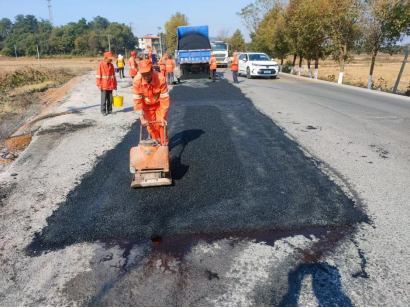 中心严格按照养护规范和标准抢抓晴好天气集中修补G322线路面坑槽、网裂等路面病害,切实改善路面状况。