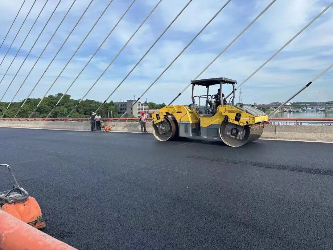 靠近沥青施工现场,一股热浪扑面而来。数台沥青摊铺机分段作业,将冒着热气的沥青均匀摊铺在桥面上,大大小小的压路机来回碾压,道路很快变得平坦顺畅。“沥青现场温度最高能达到140度,我们在高温下加班加点赶进度,就是为了能提前完成隐患整治,尽快恢复良好的通行环境,为成功举办第三届湖南旅发大会贡献力量。”一位工人笑着说。