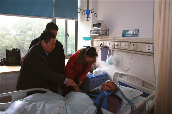 任成志一行来到湖南省第二人民医院看望老干部张利源,并送去慰问金。张老今年79岁,党龄已有57年,由于身患多种疾病,常年卧床住院。见到大家的到来,老人非常激动,但由于身体原因,无法开口说话,只能通过纸、笔和大家交流。病床前,任成志亲切地握住张老的手,向他问好,并向其家属询问老人的病情和生活状况。交谈中,张老颤抖地写下对大家表示衷心感谢的话语,任成志则鼓励老人及其家人要坚定信心,以乐观的态度面对疾病和困难,争取早日康复,并嘱咐其家人和医护人员,希望他们细心照顾,有什么困难及时向党组织反映,党组织将尽最大努力帮助解决。