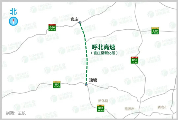 官庄至新化高速公路是“呼和浩特至北海国家高速公路G59”中的重要组成部分,是国家“十三五”165项重大工程项目,也是国家扶贫重点工程建设项目。项目起于沅陵县官庄镇沐濯铺,对接G59张家界至官庄高速公路,止于新化县琅塘镇水口坑接新溆高速公路,主线全长76.581公里,按四车道高速公路标准建设,其中官庄至安化段设计路基宽度26米,安化至新化段设计路基宽度25.5米,同步建设西安连接线4.134公里和古楼连接线10.776公里。项目投资总概算为136.53亿元,项目总工期4年。