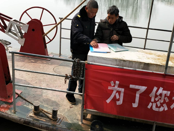 2月1日,湘潭海事执法人员检查犁头咀渡口渡船安全