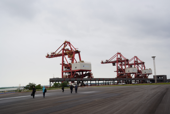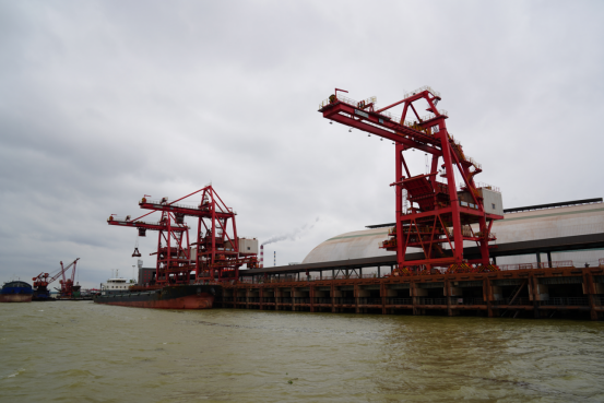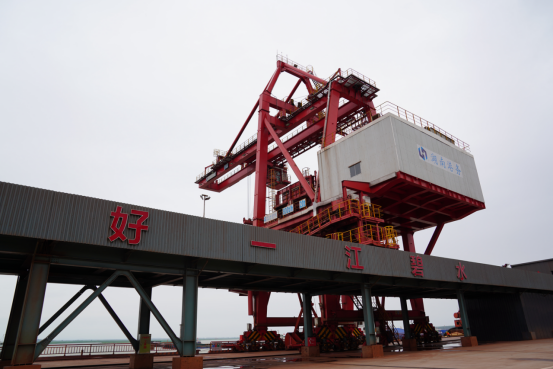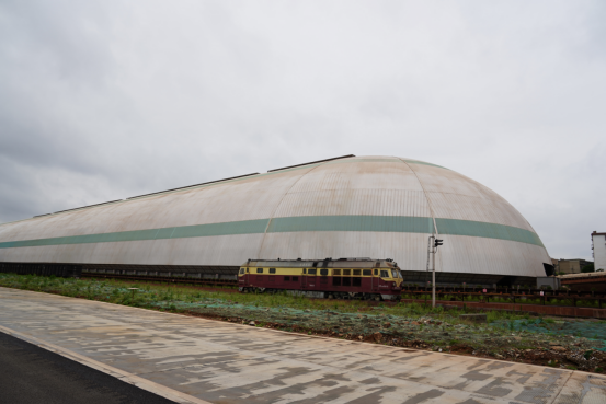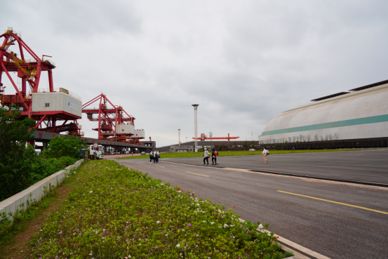 巨型“胶囊”形仓库长470米、宽110米、高46.5米,面积约5.1万平米,是目前亚洲最长、最高、面积最大的网架结构港口散货料仓,为长江流域首例。记者在现场看到,作业船舶在码头卸载,货物通过卸船机抓至料斗,然后由皮带机运送到全封闭“胶囊”仓库,再通过斗轮机、装车机输送到火车车厢里,1.5小时便可完成一列50节车厢火车的散货装车任务,年吞吐能力可达1000万吨。