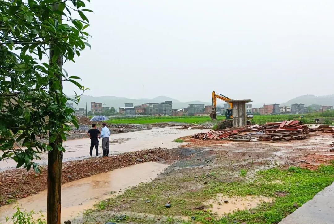 工作队与会合村干部一起抢修东田河道,确保汛期村民出行安全。