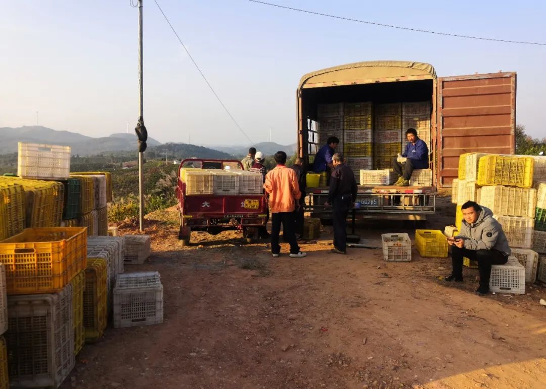 会合村果园附近,收购公司正在收购水果。
