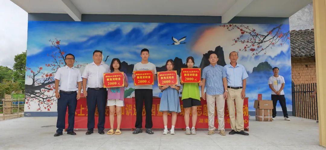 在会合村文化广场前,张胜一行在村“两委”的配合下,开展了爱心助学志愿服务活动,为村里4名高考上榜学子发放了教育资助金0.8万元;为清华观小学贫困学生捐赠了书包、作业本等学习用品;为村部捐赠了书籍200余册、文体用品540余件。同时在现场布置了10余块宣传展板,为当地少年儿童普及水上交通安全知识;开展走访慰问,为结对帮扶对象送去冰箱1台;通过现场下单、中心干部职工线上报单的方式组织消费帮扶,共计购买会合村农副产品2万元,切实用实际行动助力村级集体经济发展。
