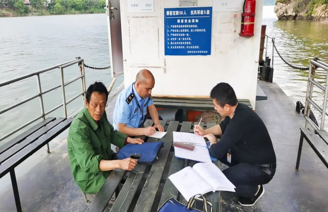 郴州市水运事务中心工作人员开展汛期渡口渡船隐患排查。