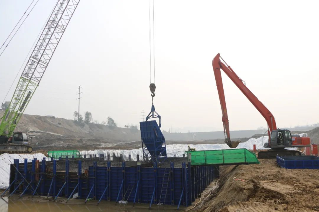 湘江永州至衡阳三级航道建设三期工程潇湘船闸主体首仓浇筑现场。