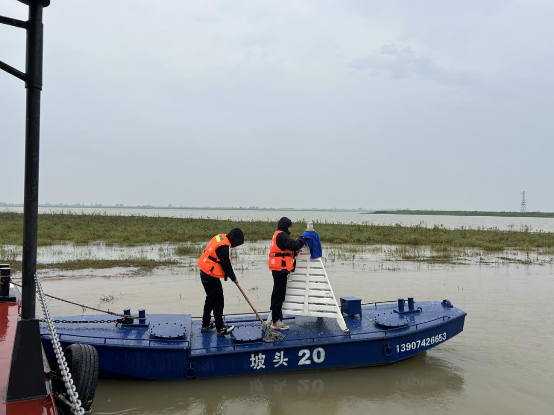 湘潭航道管理处时刻关注天气、水位等数据,科学研判航道重点水域运行情况,并充分利用航标遥测遥控、航道视频监控等信息化手段,全面掌握桥区、船舶聚集区域等重点水域情况,对航标失常等安全隐患,及时进行应急处置,做到闭环管理。长沙航道管理处全面开展航标检查,对重点桥区航段33艘单船浮标的索具进行了安全排查,重点加强了桥区左右通航标锥体3M反光膜覆膜工艺养护,增强航标鲜明度,同时清理浮标系留设备上的缠绕物,确保航标正常运行。