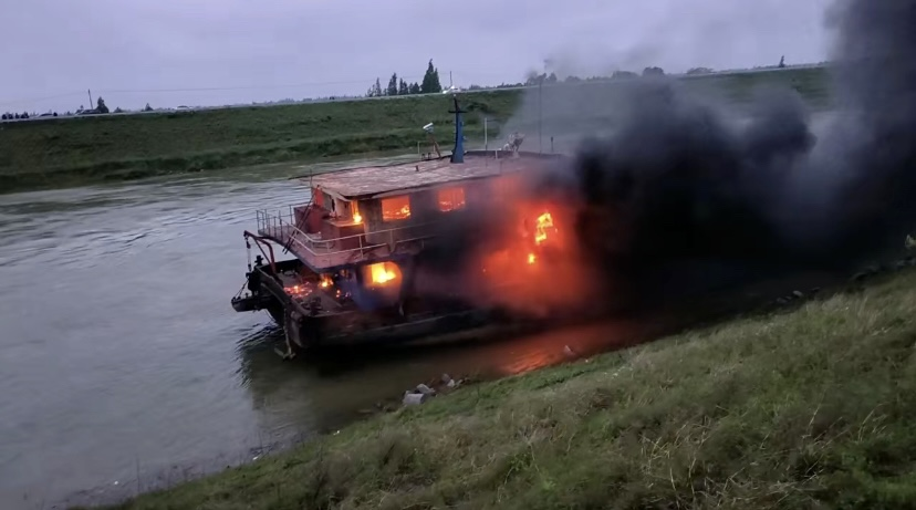 4月30日18时30分,益阳航道事务中心毛角口航道管理处接到毛角口通行信号指挥台报告,称“湘汉寿货0699”自卸驳在毛角口至油麻潭控制河段伍家湾水域发生火灾,且船上有多名船员,需紧急救援。