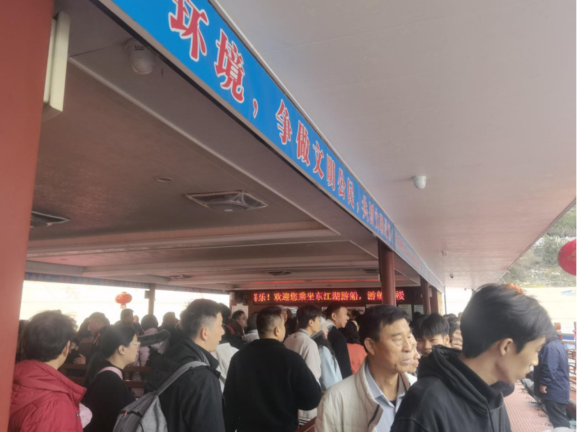 除了长沙,郴州这座以“雾漫东江”闻名遐迩的城市在春节期间也成了人们水路旅游的“香饽饽”。春节期间,东江湖景区内张灯结彩,人流如织,即便是飘着小雨的阴天,也有不少游客前来欣赏云雾缭绕的山水画卷。在东江大坝客运班线码头,走亲访友的人也很多,值班人员加强巡逻检查,确保乘船安全。为满足旅客乘船需求,旅游、客运码头都增加了发航班次,东江湖上来往船舶络绎不绝,截至2月4日,累计发送旅客87899人次。