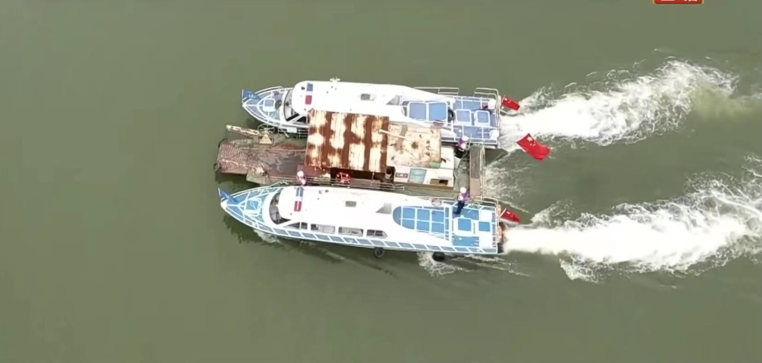 一艘渡船在沅水横渡时因螺旋桨被水面漂浮杂物缠绕,导致船舶机器故障失去动力、人员落水,情况紧急。由怀化市、麻阳县两级水运部门组成的水上交通应急救援队救援人员,立即驾驶海巡艇、气垫船赶赴现场施救。这是日前怀化市2022年防汛抗灾演练中的一幕。