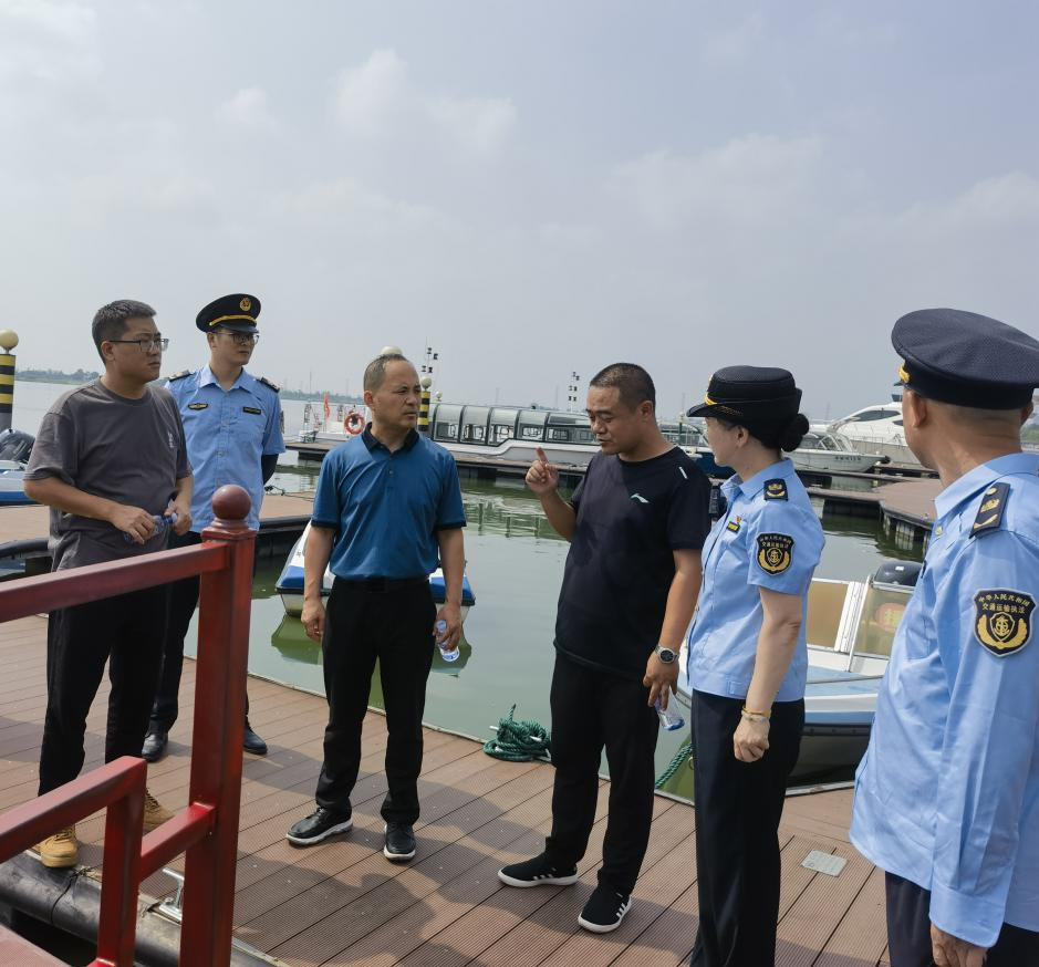 在常德市穿紫河畔,执法人员细致地向景区管理人员了解游船运行期间的安全管理情况,重点检查游船救生、消防等设施设备是否有效配备、科学放置。对检查中发现的问题,执法人员及时进行交办,当场督促相关管理者整改落实,并强调要紧绷安全弦、把好安全关,规范游船安全管理,提升水上交通“安全指数”。