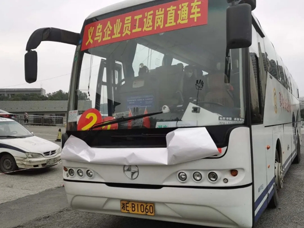 3月5日下午4时许,经过紧张有序地转运后,载有23名邵阳籍返岗农民工的大巴车缓缓驶入沪昆高速邵阳南收费站,开往浙江义乌。他们都是义乌相关复工企业的邵阳籍返岗员工。