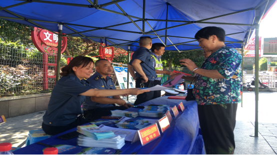 6月16日上午,城步县运管所在县城儒林广场参加县安全生产委员会举办的安全生产月宣传活动。