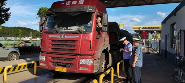 近日,驾驶员刘某驾驶湘D35180乘龙重卡途经衡阳市衡东县潭泊超限检测站时,经检测货车超载17吨,衡阳市治超联合执法人员依法对其处罚并卸载,在查明车籍地在衡东县后将超限超载信息抄告县治超办作进一步处理。这是衡阳严格落实治超工作“一超四究”制度 ,发挥执法的倍数效应的一个场景。
