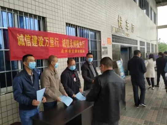 近日,永州市道路运输服务中心在永州汽车站开展“诚信建设万里行,诚信永州我先行”宣传活动。