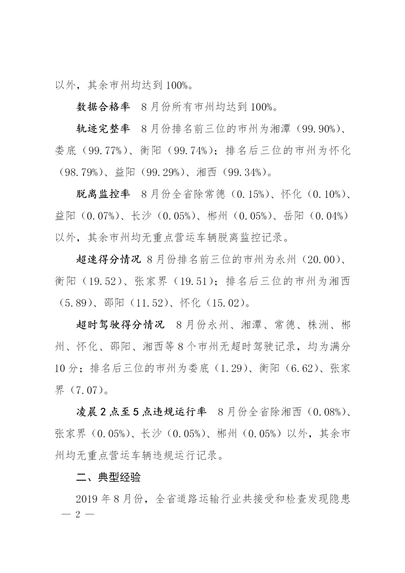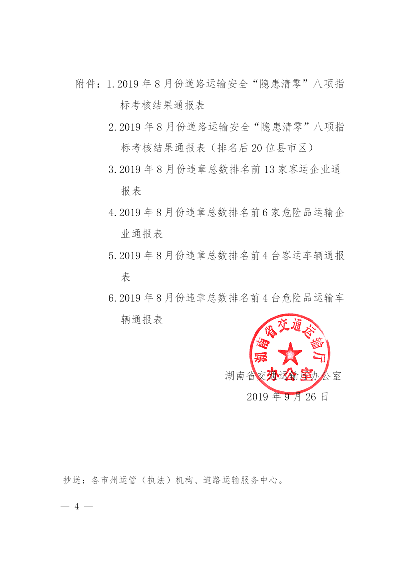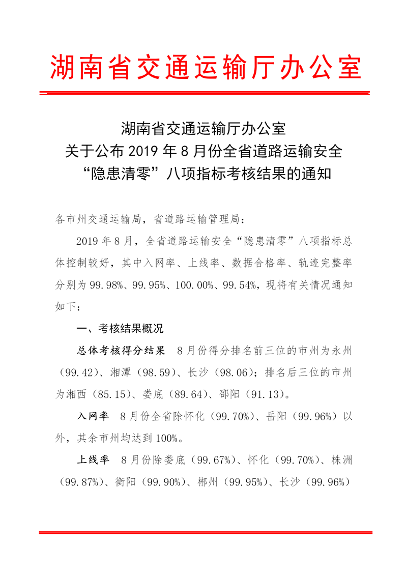 附件1:2019年8月份道路运输安全“隐患清零”八项指标考核结果通报表