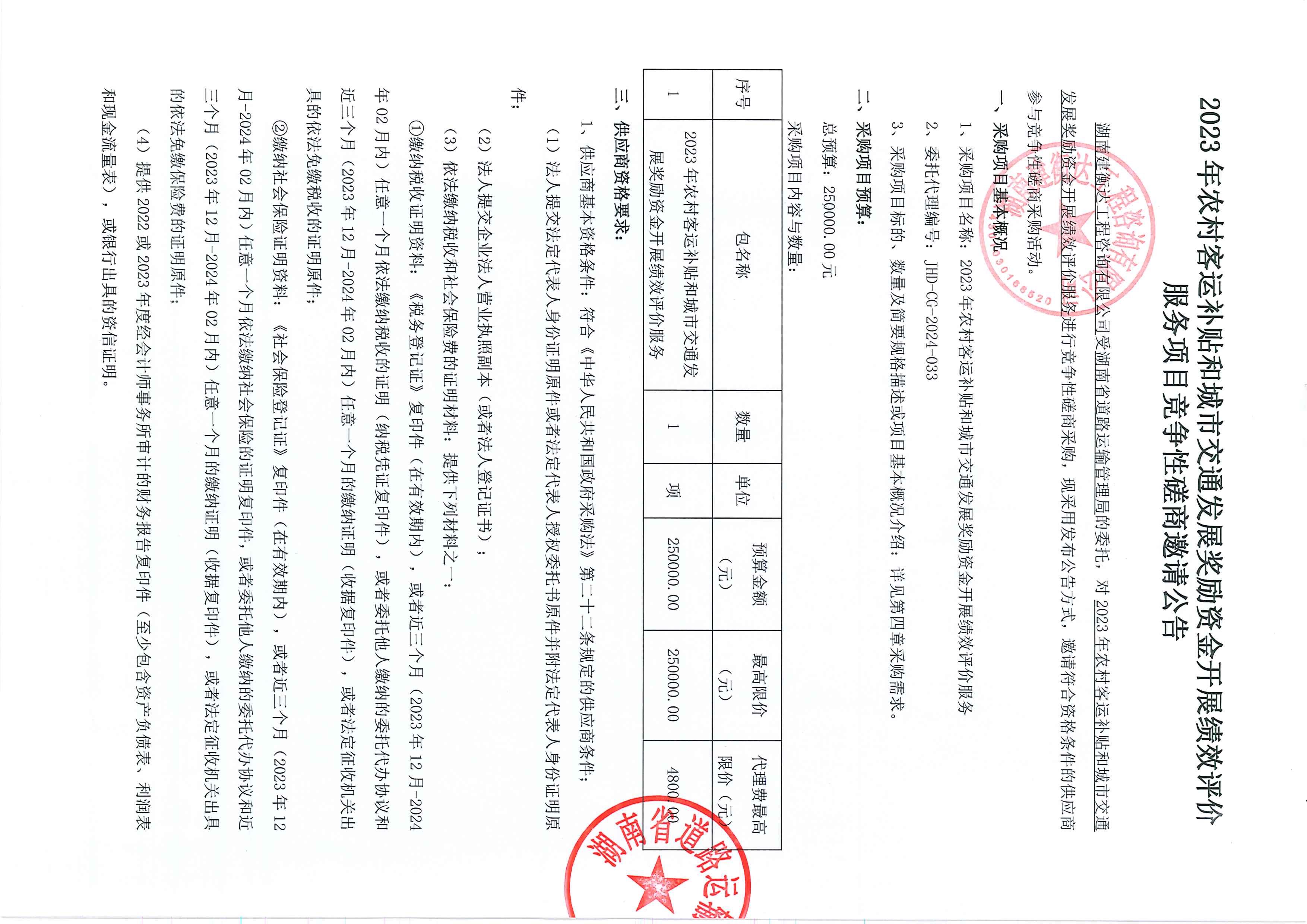 2023年农村客运补贴和城市交通发展奖励资金开展绩效评价服务项目竞争性磋商邀请公告