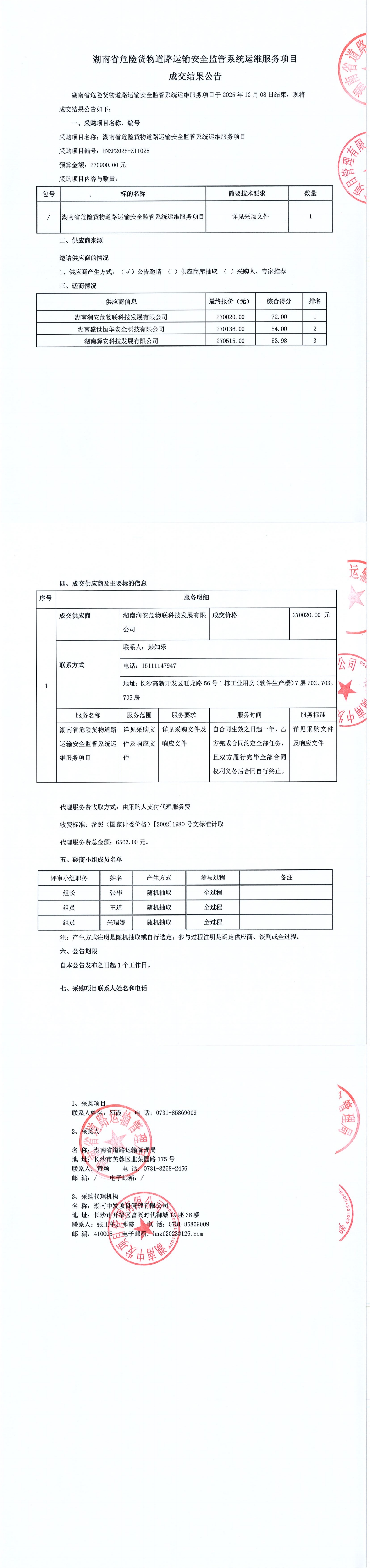 湖南省危险货物道路运输安全监管系统运维服务项目成交结果公告