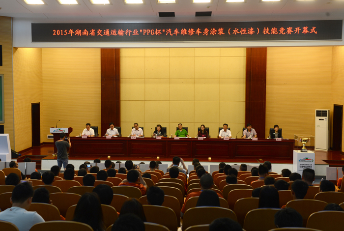 6月9日,为期三天的全省“PPG杯”汽车维修车身涂装(水性漆)技能竞赛在湖南交通职业技术学院汽车实训中心正式开幕。此次竞赛由省交通运输厅、省人力资源和社会保障厅、省总工会联合主办,由省运管局承办、省汽车维修与检测行业协会协办。省交通运输厅党组成员、副厅长胡建新,省交通运输工会主任赵宇,省人力资源和社会保障厅劳动就业局局长谭文波,省总工会党组成员、副主席周乐红,PPG汽车修补漆及轻工业涂料亚太区副总裁袁洁仪等领导出席开幕式。开幕式由省运管局张智勇局长主持。
