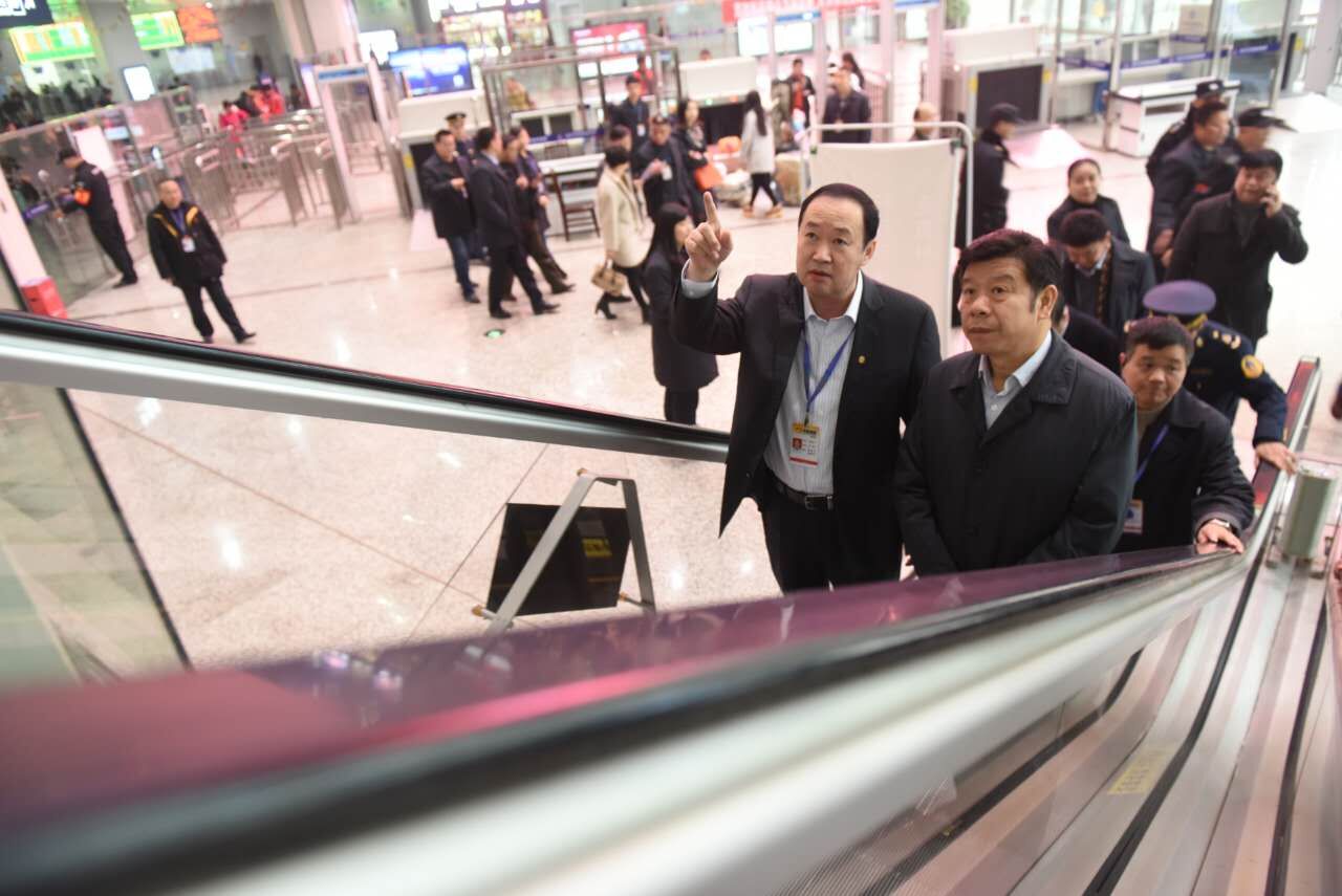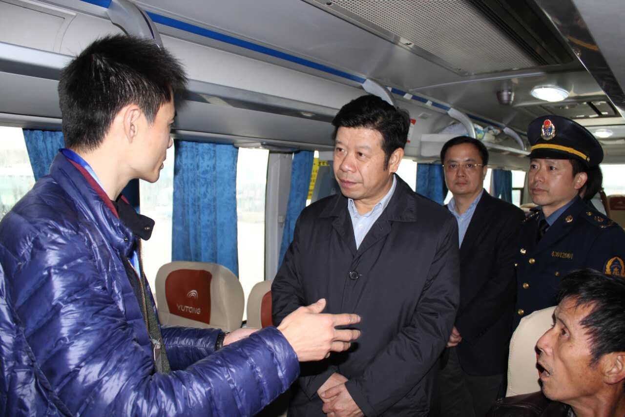 邝邹飞副厅长一行先后来到汽车南站过渡站、湘江综合交通枢纽站,并实地查看了售票厅、候车室、安检站、GPS中心等。邝邹飞副厅长登上了待发班车,认真观看了车辆的安全知识宣传视频,旁听了驾驶员同志的发车前安全承诺宣读;仔细检查了GPS的日常工作记录,就GPS工作的重要性与大家进行了探讨,强调要严格做好客运车辆安全状况登记记录,并对违规情况及时处理和反馈,严把安全关,全力做好各项安全工作。