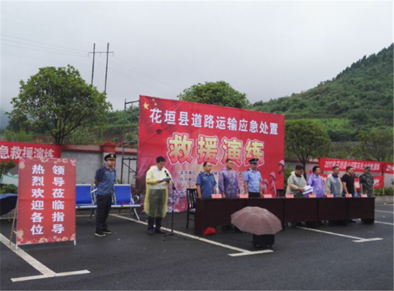 6月29日花垣县运管所在花垣镇佳民汽车客运总站停车场举行花垣县道路运输应急处置救援演练活动。