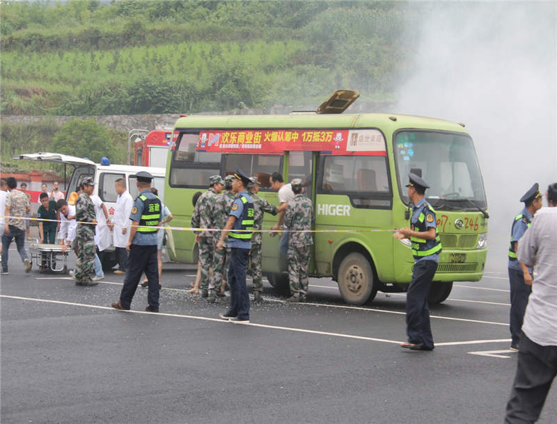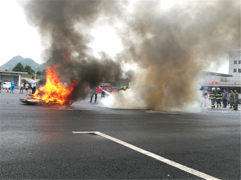 演练一是模拟液化气钢瓶泄漏起火扑灭和处置;二是模拟了火工品(炸药)在运输时发生摩擦起火后的扑灭和处置;三是模拟了客运车车厢内自燃后,驾驶员和乘务员如何指导帮助乘客自救逃生与外界应急处置救援;四是模拟了废机油、易燃废弃物燃烧的扑灭和处置。