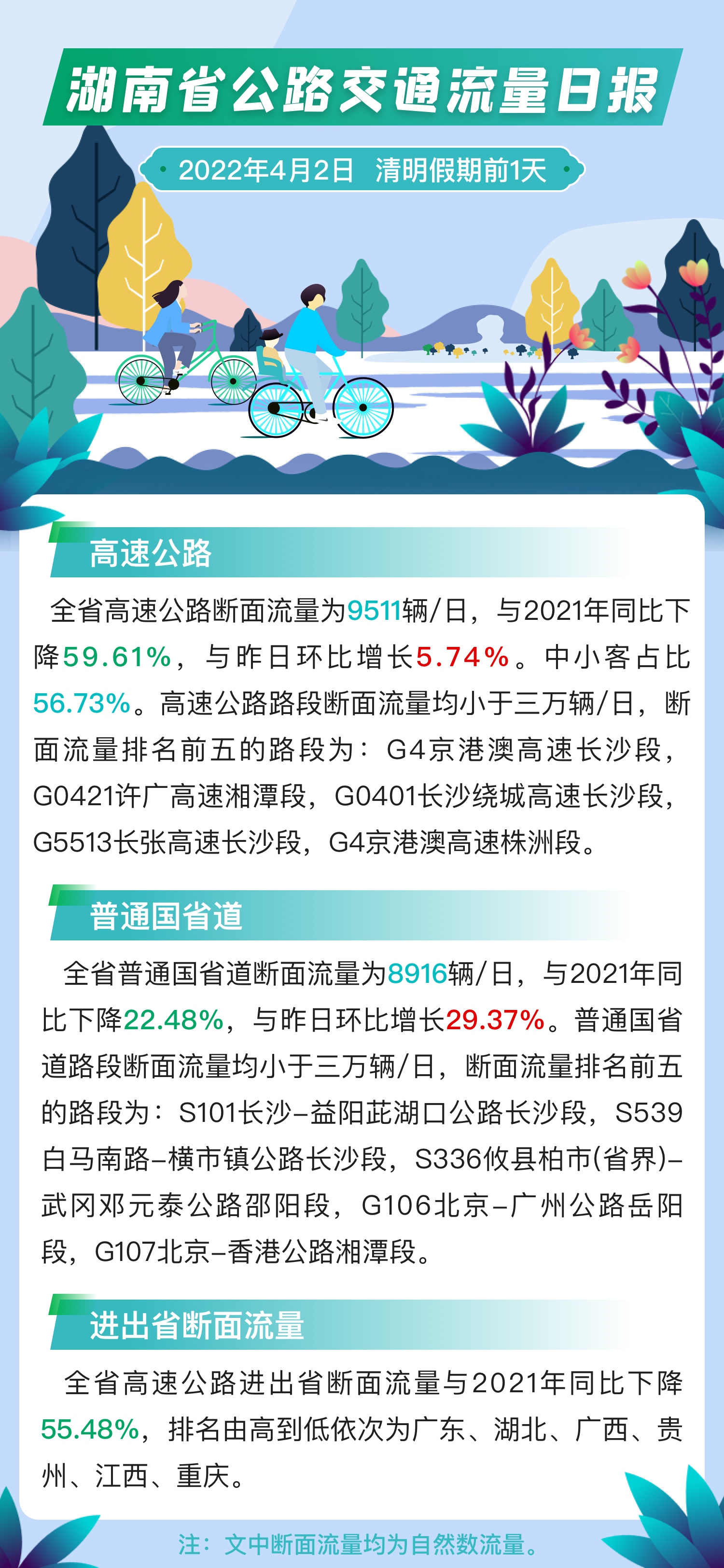 湖南省公路交通流量日报(4月2日)