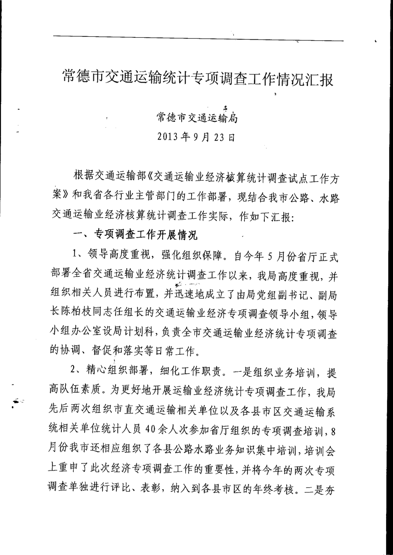 常德:常德市交通运输统计专项调查工作情况汇报