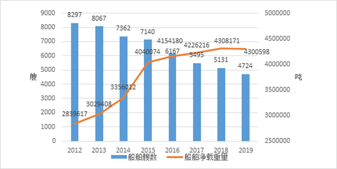 图6 2012-2019湖南水上船舶拥有量
