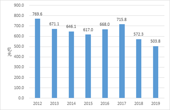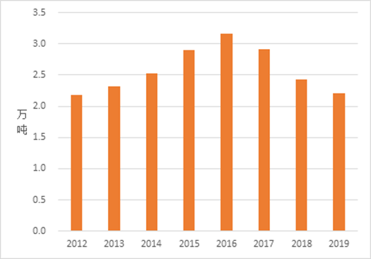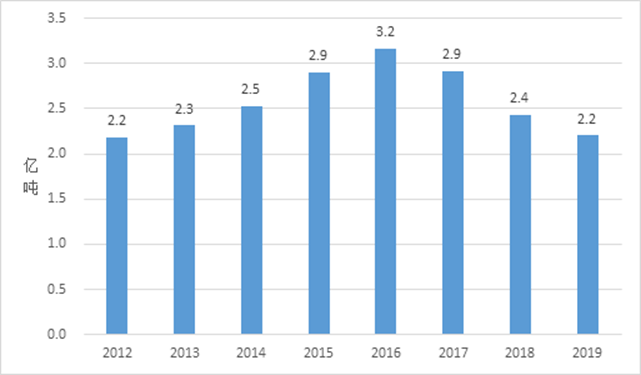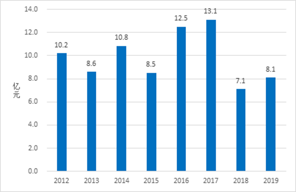 图8 2012-2019年港口外贸吞吐量