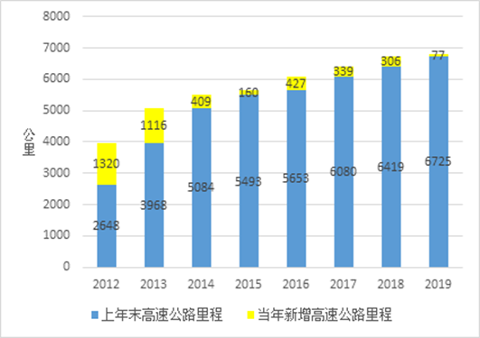 图3 2012-2019全省高速公路里程