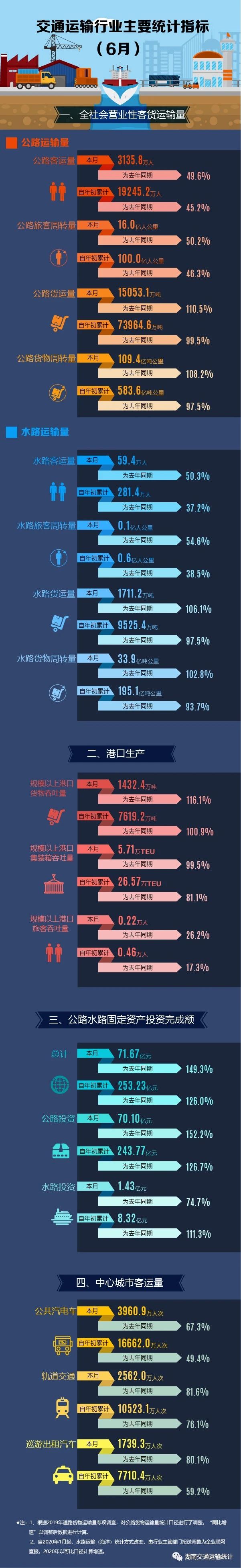 主要指标:湖南省2020年6月交通运输行业统计月报
