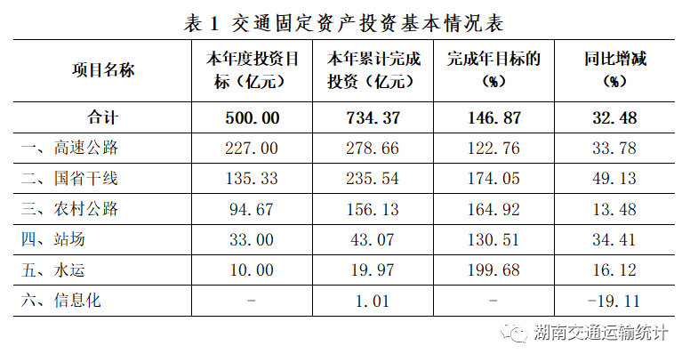 为全力加快推进高速公路建设,特别是为确保拟新开工项目“应开尽开,能开早开”,我厅提前谋划,详细部署,采取“挂图作战”、交叉作业,密集调度等多项行之有效的措施,全力推进高速公路新开项目前期工作。全年共13个项目近1000公里按计划顺利开工建设,超额完成年初确定的开工12个项目910公里的目标。其中,安慈高速公路石门至慈利段建成通车试运营,湖南实现“县县通高速”。今年固定资产投资完成额、同比增速、年度目标完成度均为近三年最高水平。为全省经济加快恢复、逆势反弹提供了强力支撑。此外,还有10余个高速公路项目和水运重点项目的前期工作正扎实推进,为“十四五”交通建设做好项目储备,积蓄投资后劲。