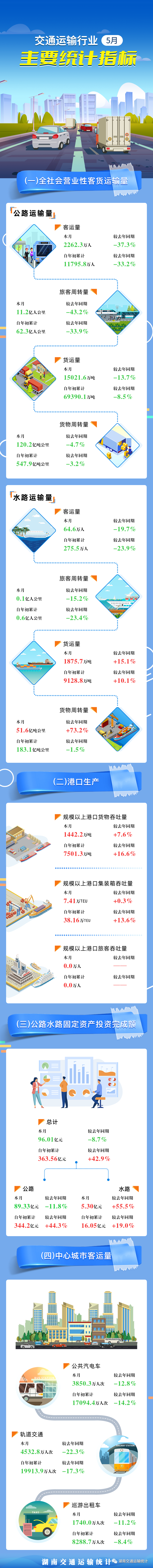 主要指标:湖南省2022年5月交通运输行业统计月报