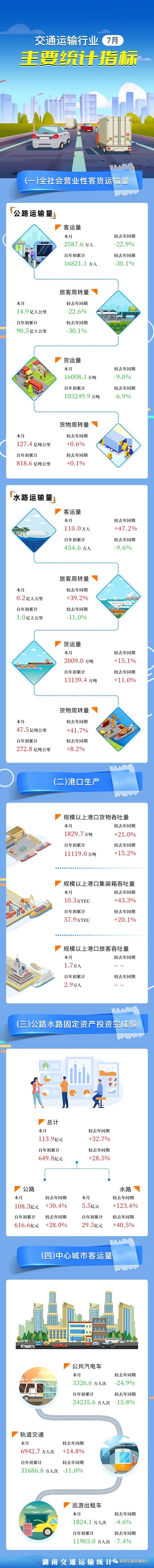 主要指标:湖南省2022年7月交通运输行业统计月报