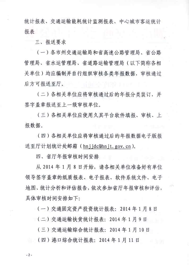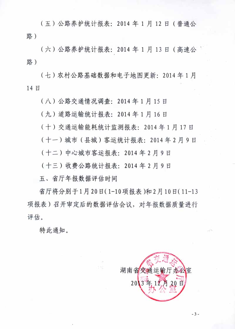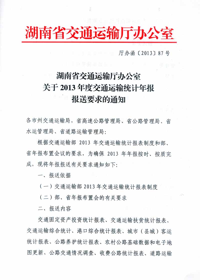 湖南省交通运输厅办公室 关于2013年度交通运输统计年报报送要求的通知