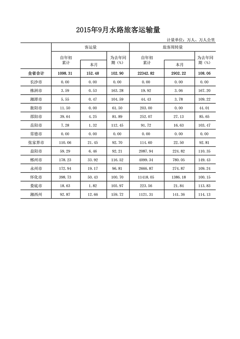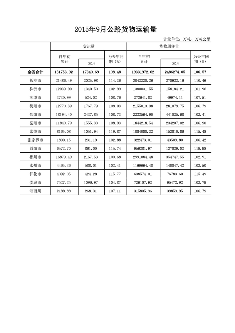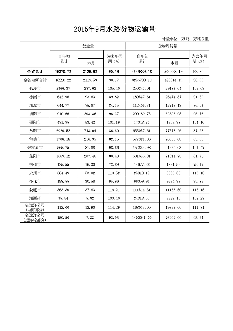 2015年9月公路水路运输量
